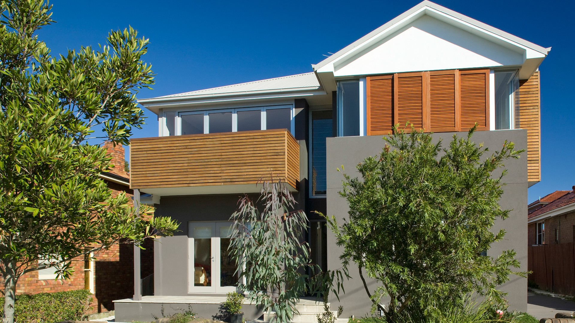 Timber elements, a highly modelled form and contemporary finishes have transformed this once nondescript bungalow into a contemporary and striking family residence.
